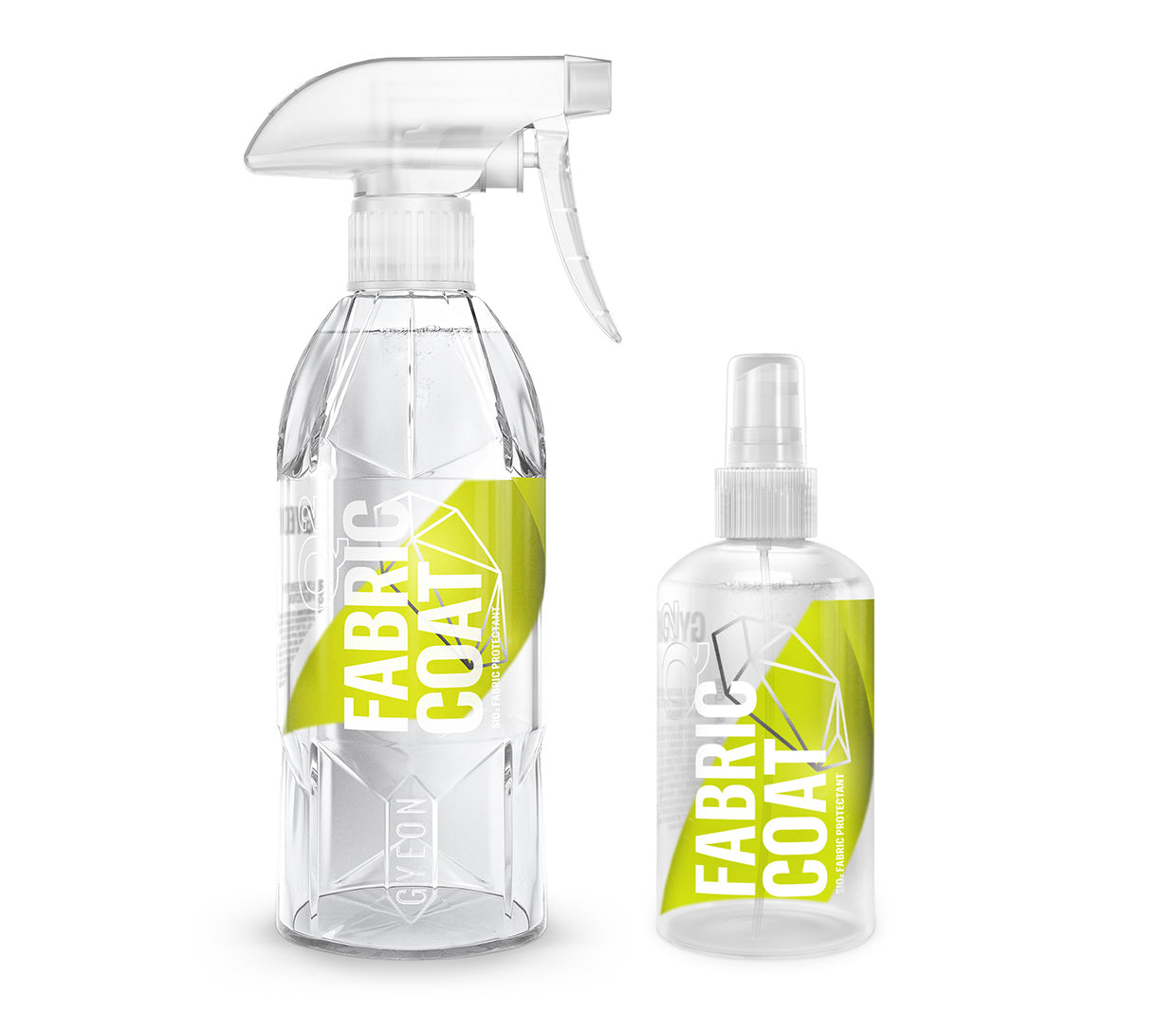 Gyeon Q² FabricCoat is a functional silica-based coating that forms a semi-permanent water and grime repellent barrier on all modern automotive textiles, both inside and out. It uses the latest in low volatile content silicon (Si) technology to lay down a film of dimethylsiloxane polymers that condense rapidly to form a highly flexible SiO2 coating that bonds to fabrics at the molecular level. Following application, treated surfaces become extremely hydrophobic and thus virtually impervious to liquids and grime. In addition, this coating also blocks out UV radiation from the sun, and thus helps to prevent textiles from fading over time.
