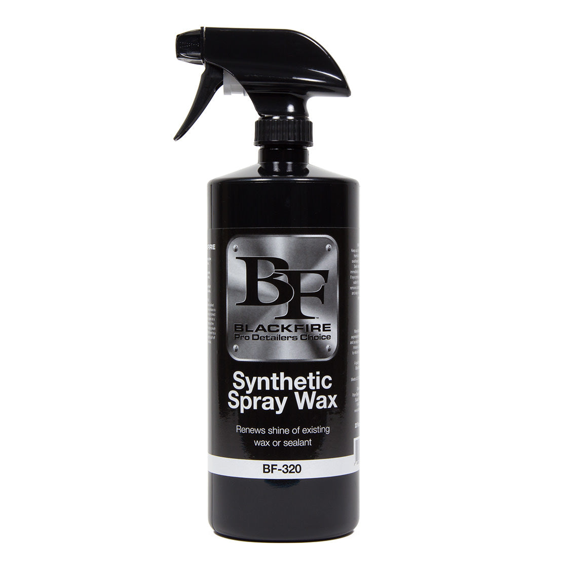 BLACKFIRE Synthetic Spray Wax is a spray sealant containing the same super-polymers and Polycharger technology used to formulate BLACKFIRE Paint Sealant. Designed to be temperature insensitive, streak-free and safe for use on all paint types, it restores a freshly detailed look in minutes and beads water relentlessly. When used regularly, BLACKFIRE Synthetic Spray Wax enhances slickness and prolongs the life of finishes sealed with BLACKFIRE Paint Sealant and other high quality polymer-based sealants indefinitely.