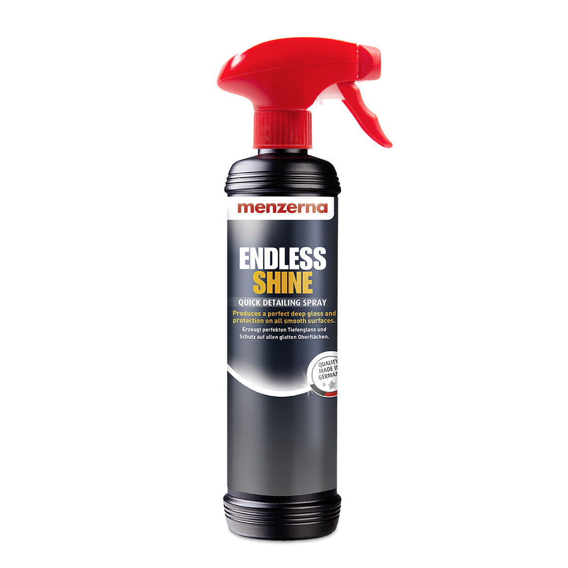 Menzerna Endless Shine is a fully synthetic quick detailing spray that removes fingerprints and water spots while simultaneously enhancing surface gloss and laying down fresh protection. Its unique German-made formula is silicone-free and safe for use on all exterior surfaces, including windows and trims (it is safe for use on plastic, rubber and bare metals). Menzerna Endless Shine is intended for use after routine washing and drying, and is designed to help restore and maintain previous layers of synthetic protection.