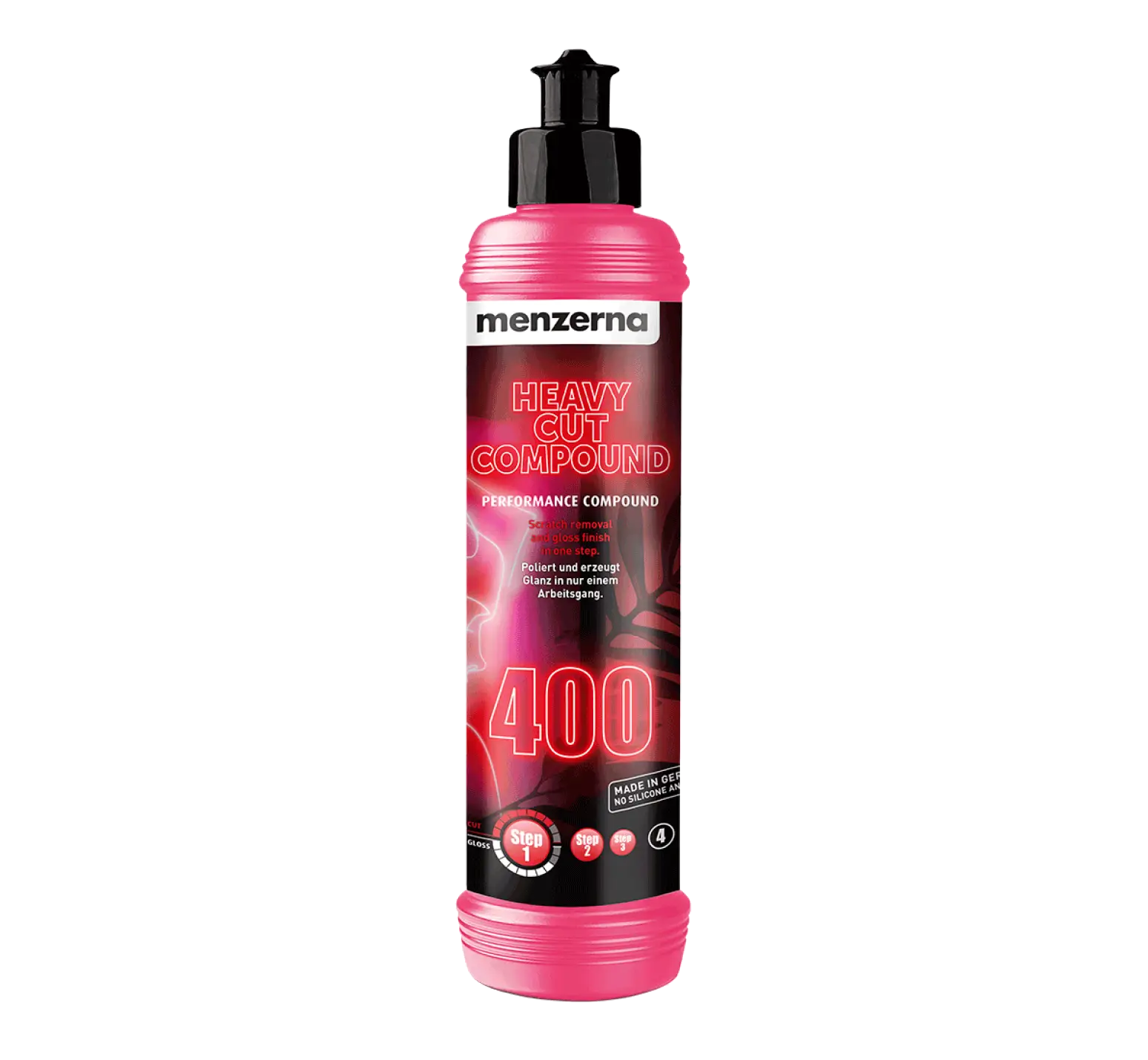 Menzerna Heavy Cut Compound 400 is an aggressive professional cutting compound. It cuts paint back quickly and easily, and is thus ideal for tackling deep scratches and severe acid etching. Unlike many cutting compounds, it also finishes down well to give a sharp, high gloss finish that, in most cases, needs only minor refining with a finishing polish afterwards. Menzerna Heavy Cut Compound 400 uses coarse precision-milled diminishing abrasives suspended in a base of lubricating oils. Like its siblings, it contains no fillers of any kind. Although designed with scratch-resistant clearcoats in mind, it's also suitable for use on conventional hard paint finishes in situations where maximum cut is required.